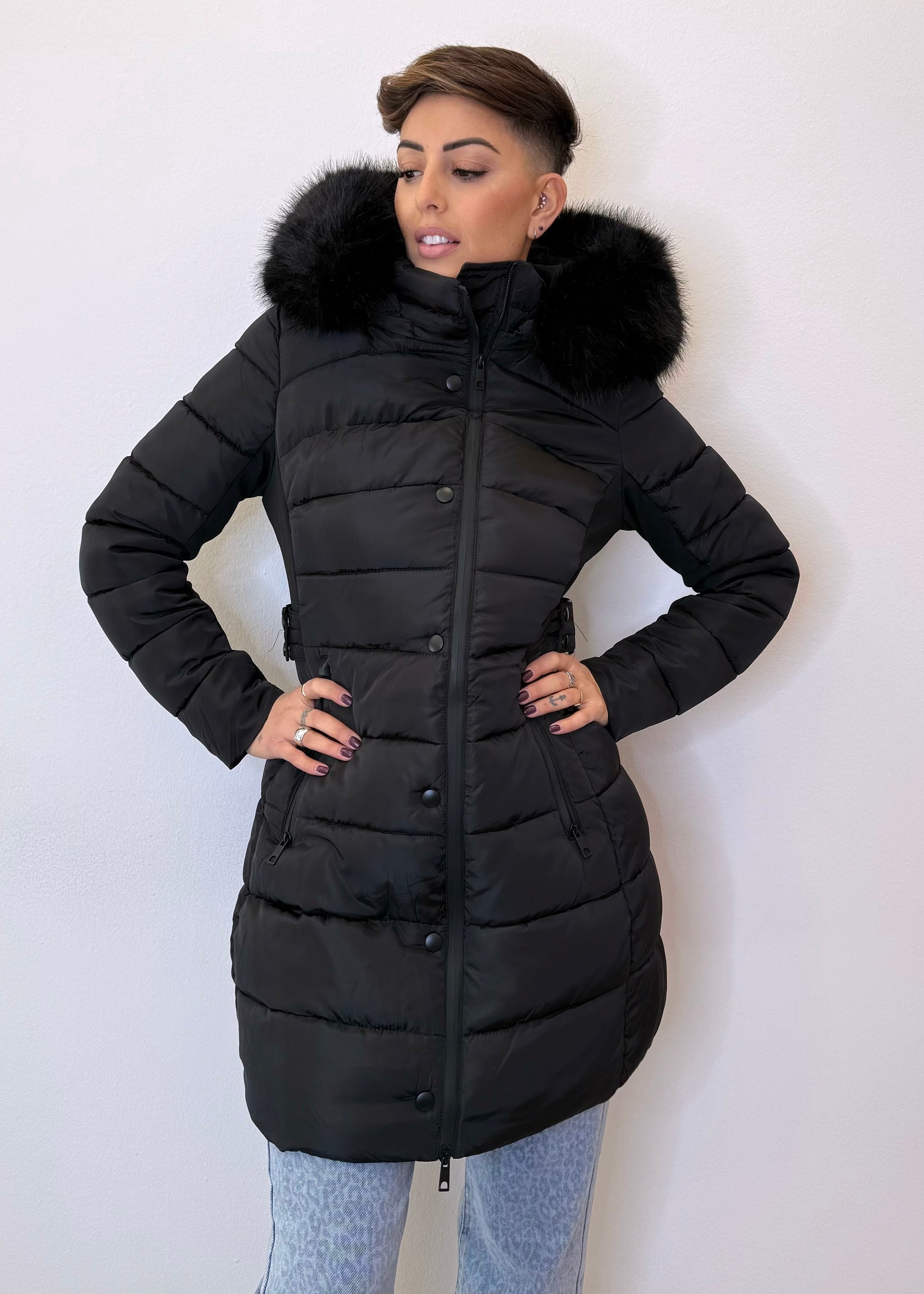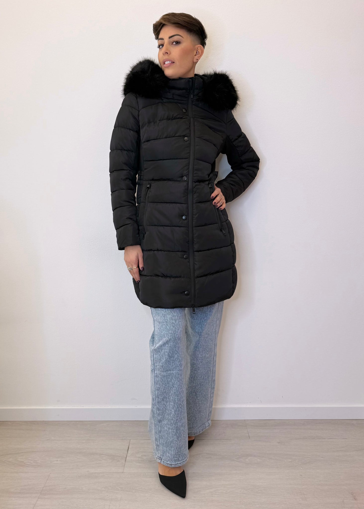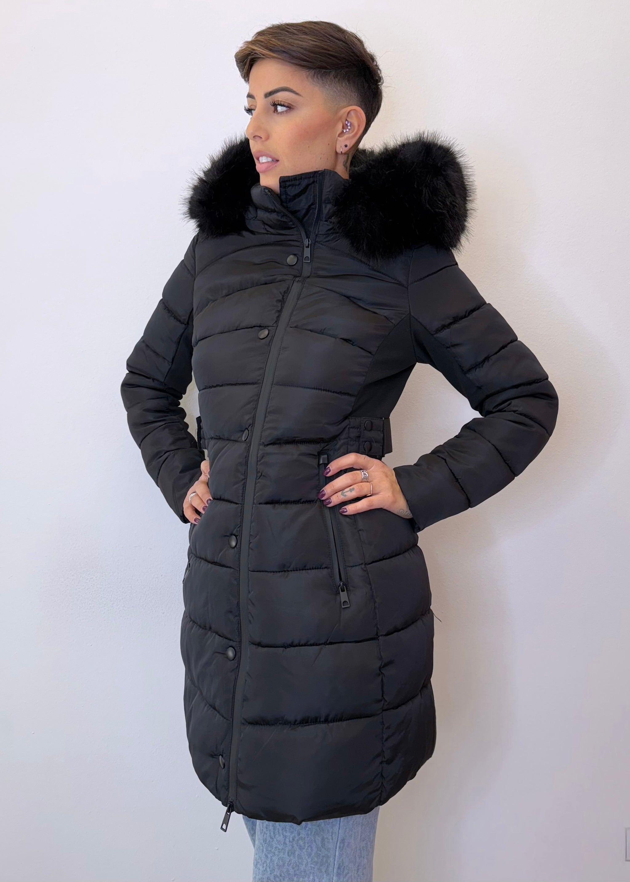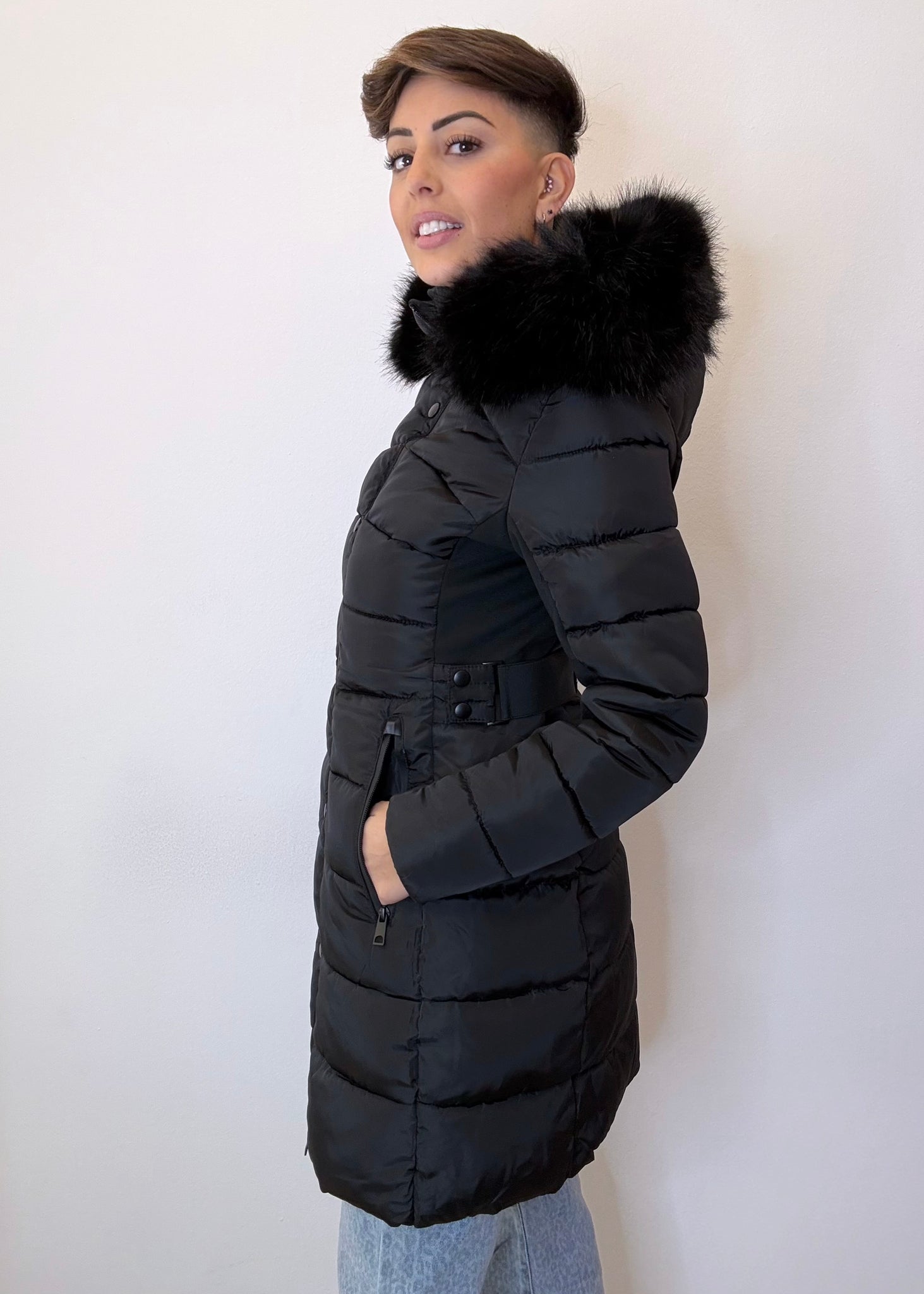 Giubbotto in top quality variante lunga, super caldo che veste a taglie dalla S alla XL. Taschino interno e pelo rimovibile.