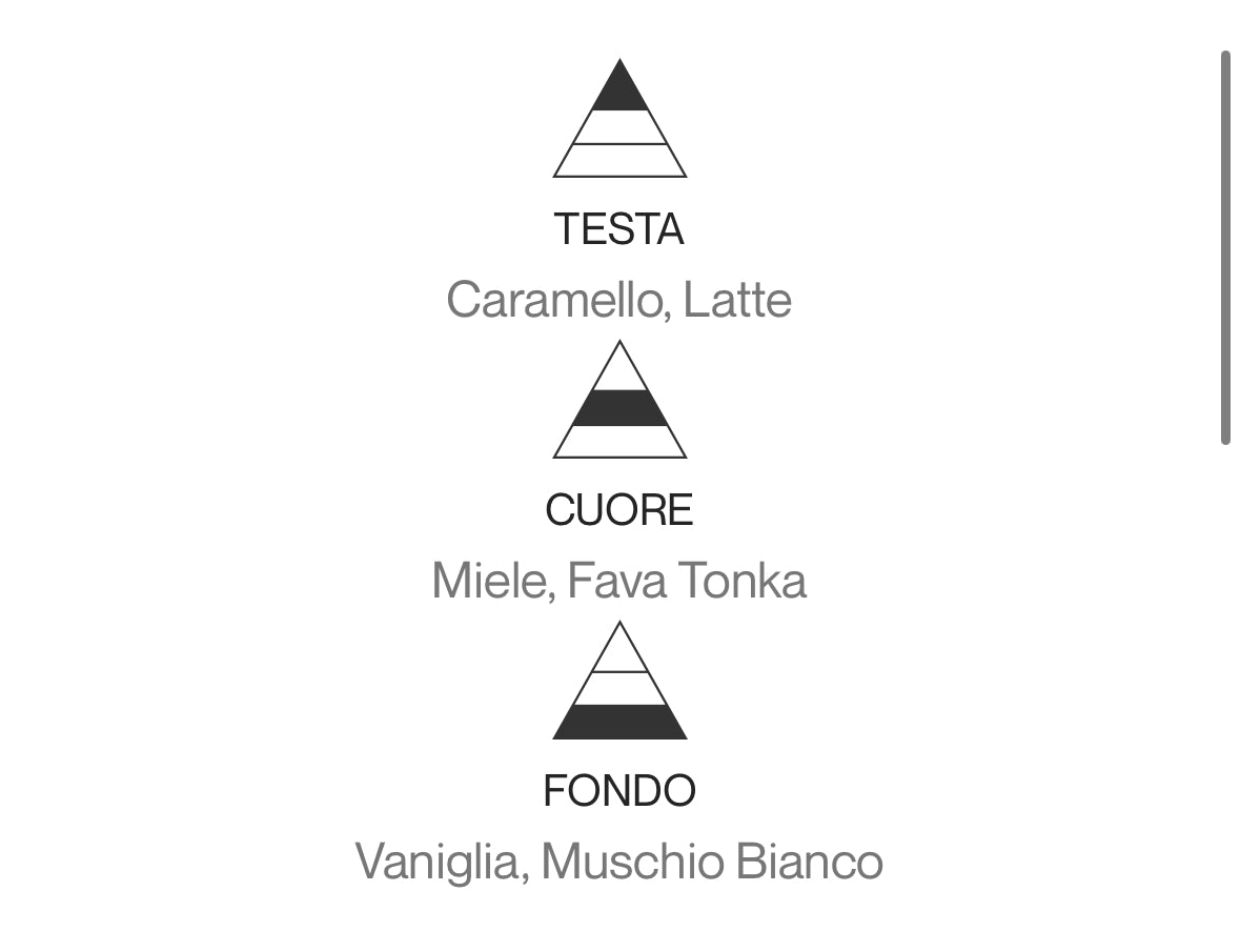 Le note di fondo rappresentano la Vaniglia e il Muschio bianco.