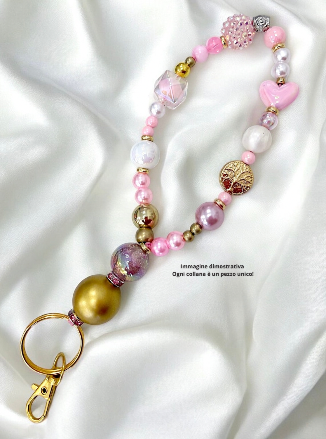 Portachiavi Corto di perle fatto a mano 🩷🤎 Rosa e oro