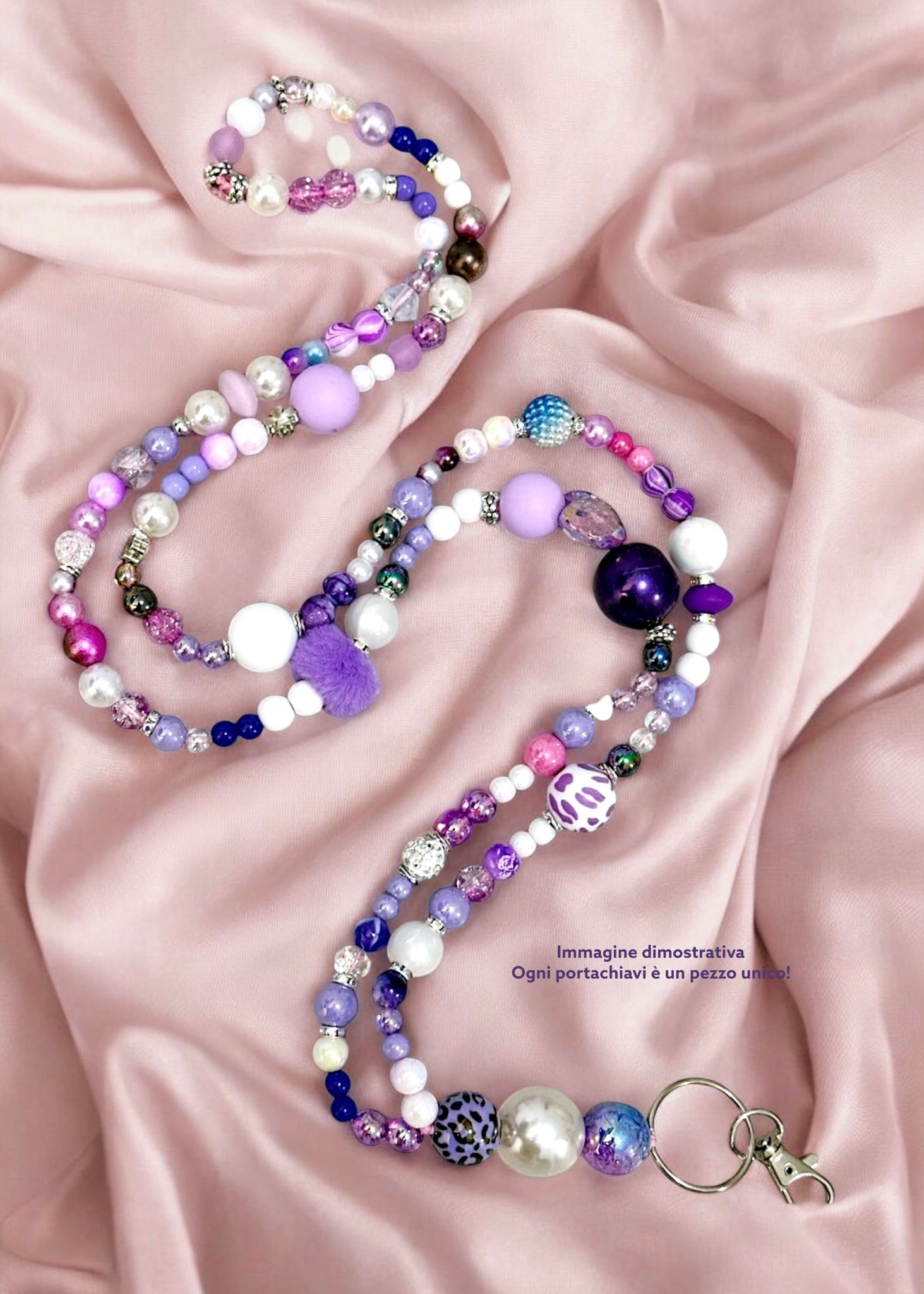 Portachiavi Lungo da collo di perle fatto a mano 💜 Lilla