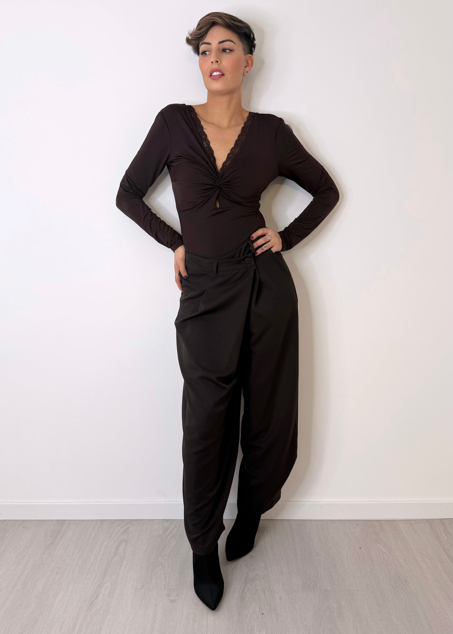Body con scollo a V in pizzo - moro Apri lightbox dell'immagine