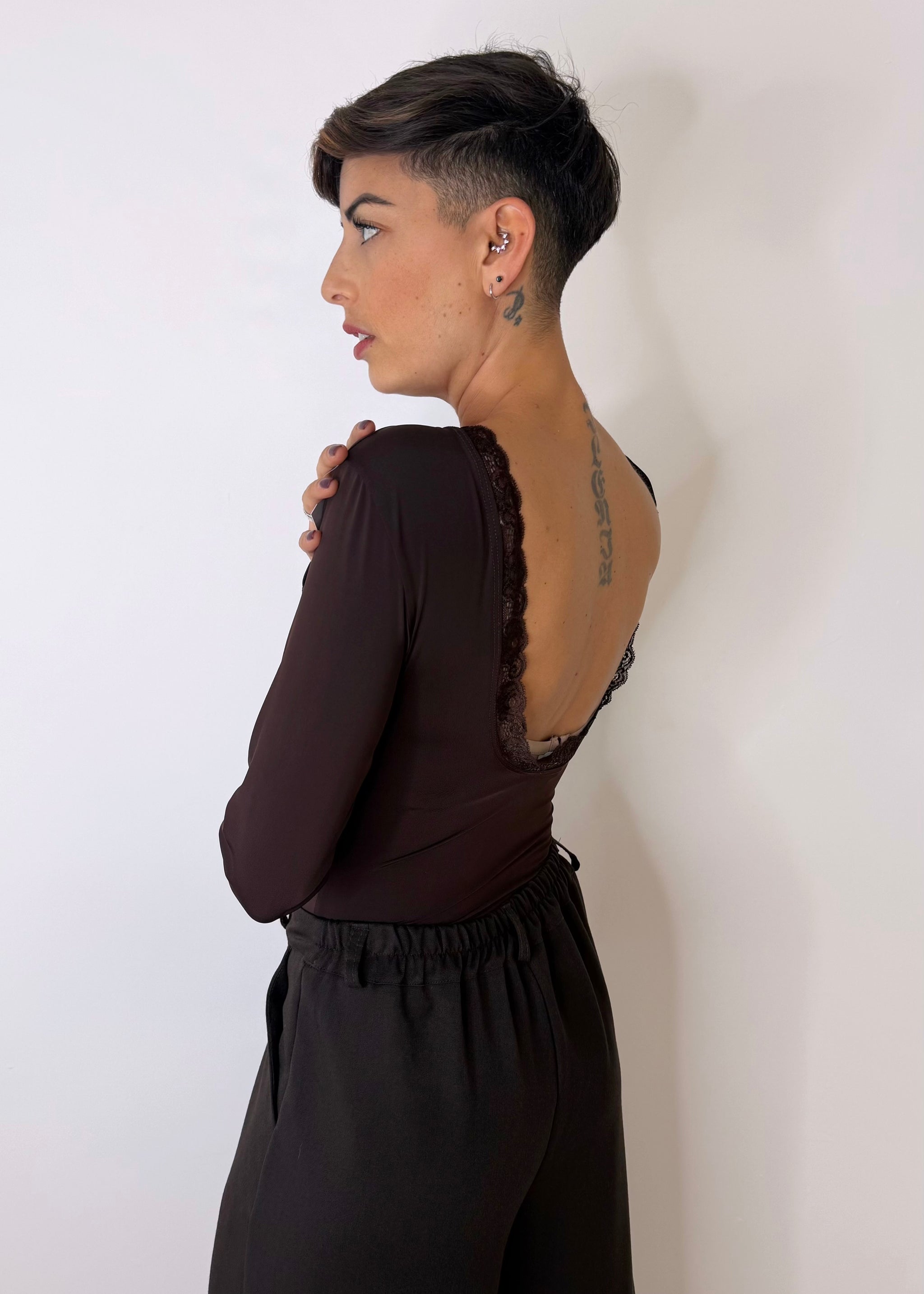 Home/ANEW/Body con scollo a V in pizzo - moro