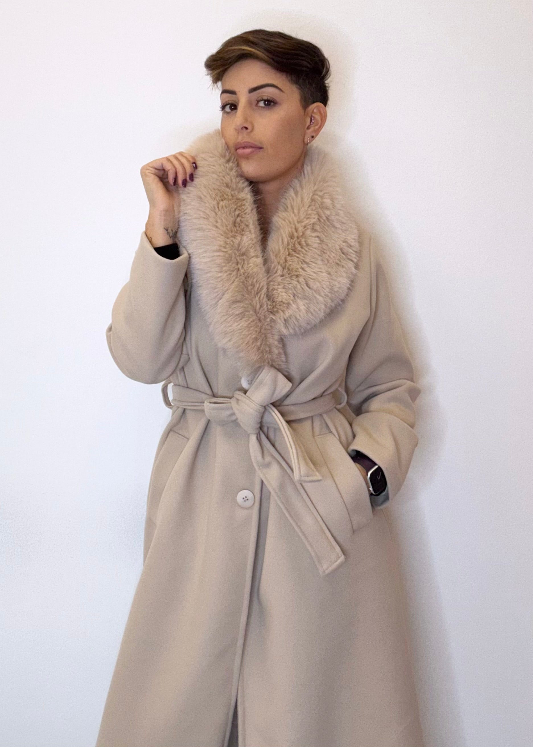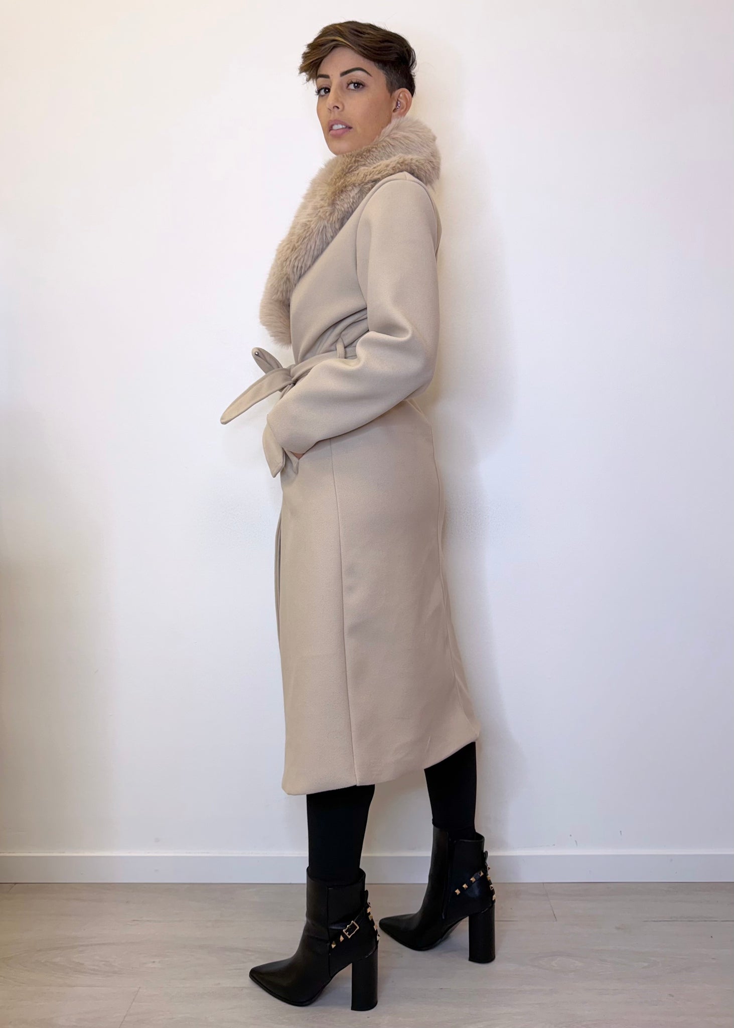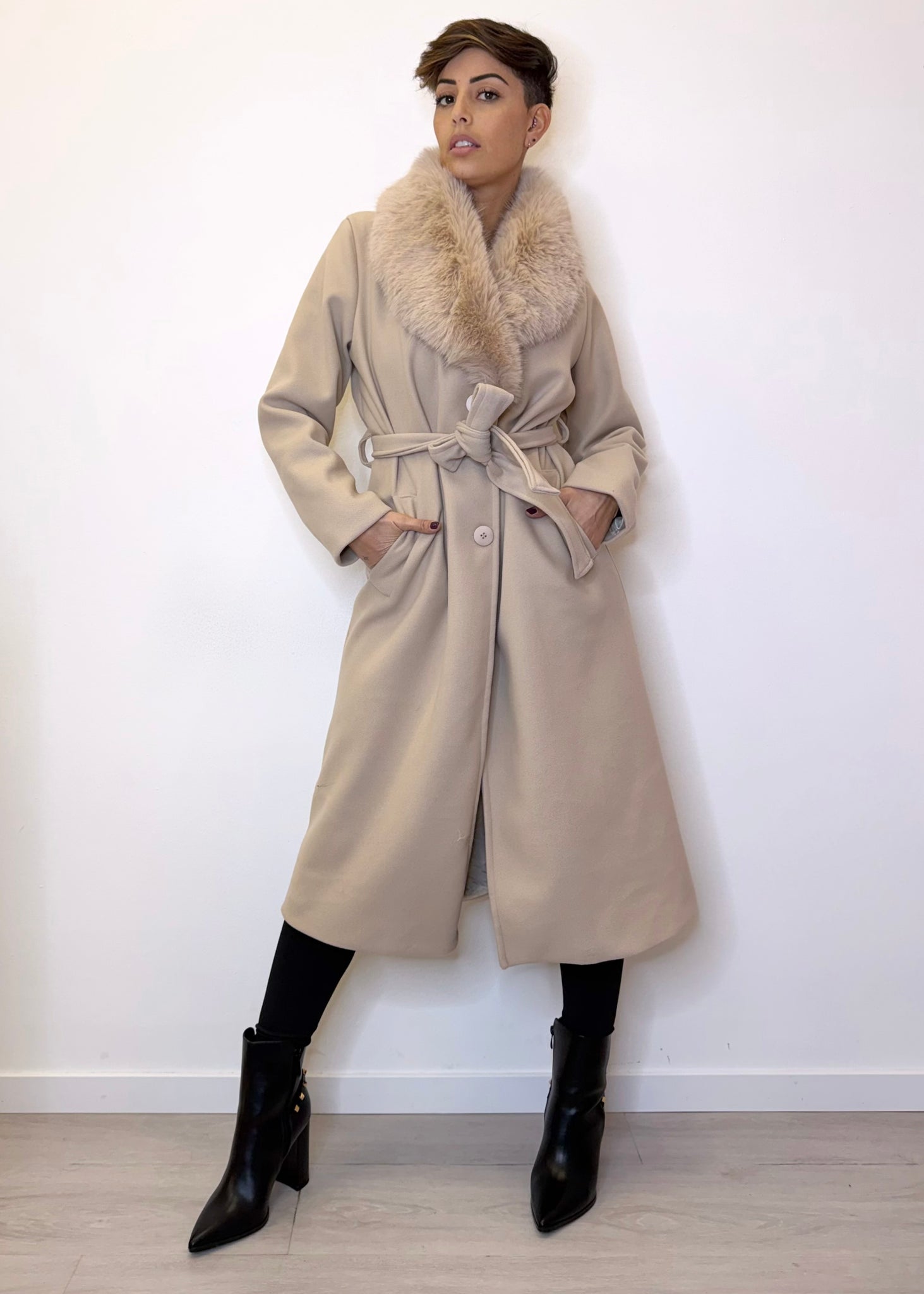 Cappotto lungo con pelo - beige Apri lightbox dell'immagine