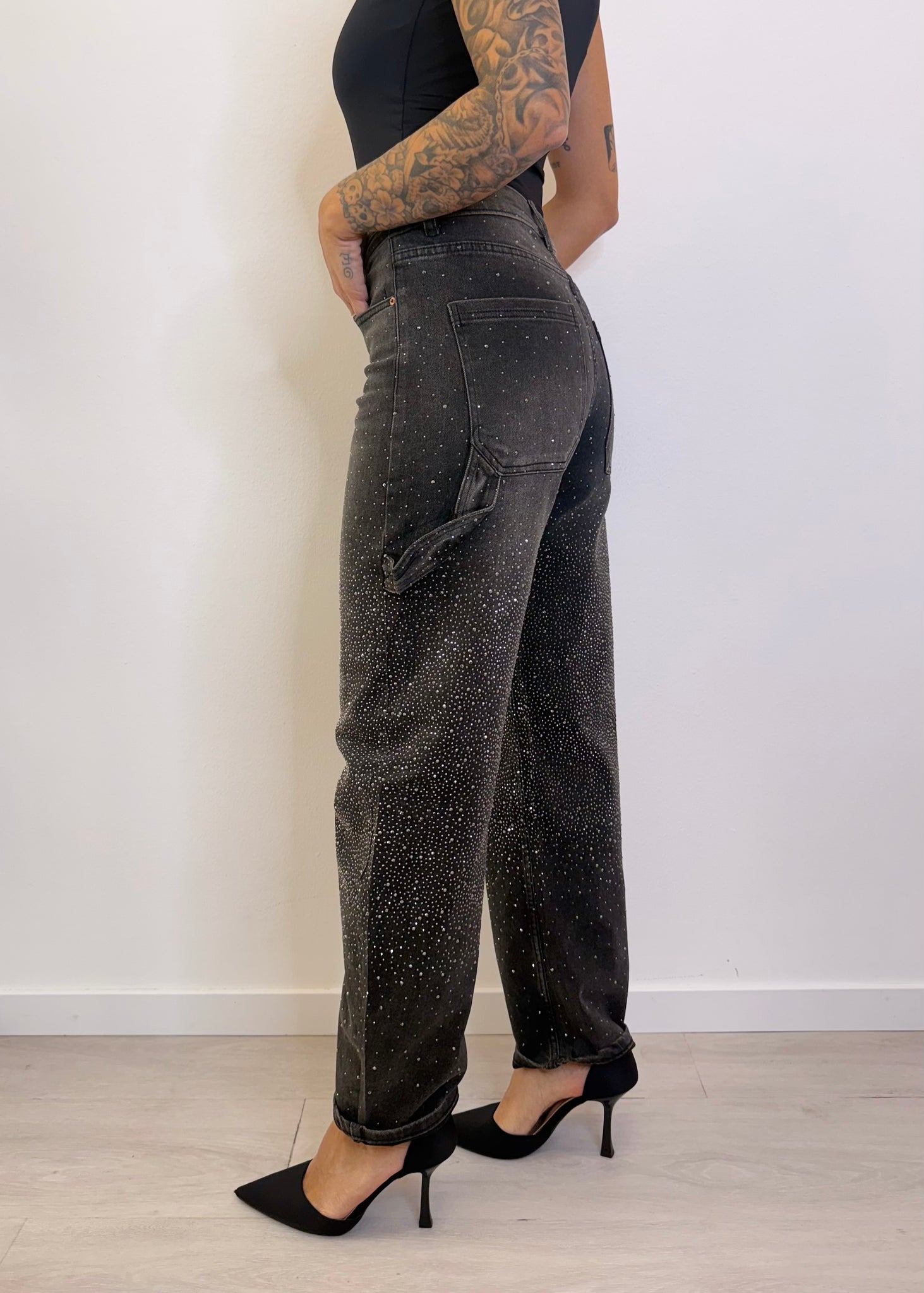 Jeans Baggy brillantinato nero fumè - ULTIMA XL