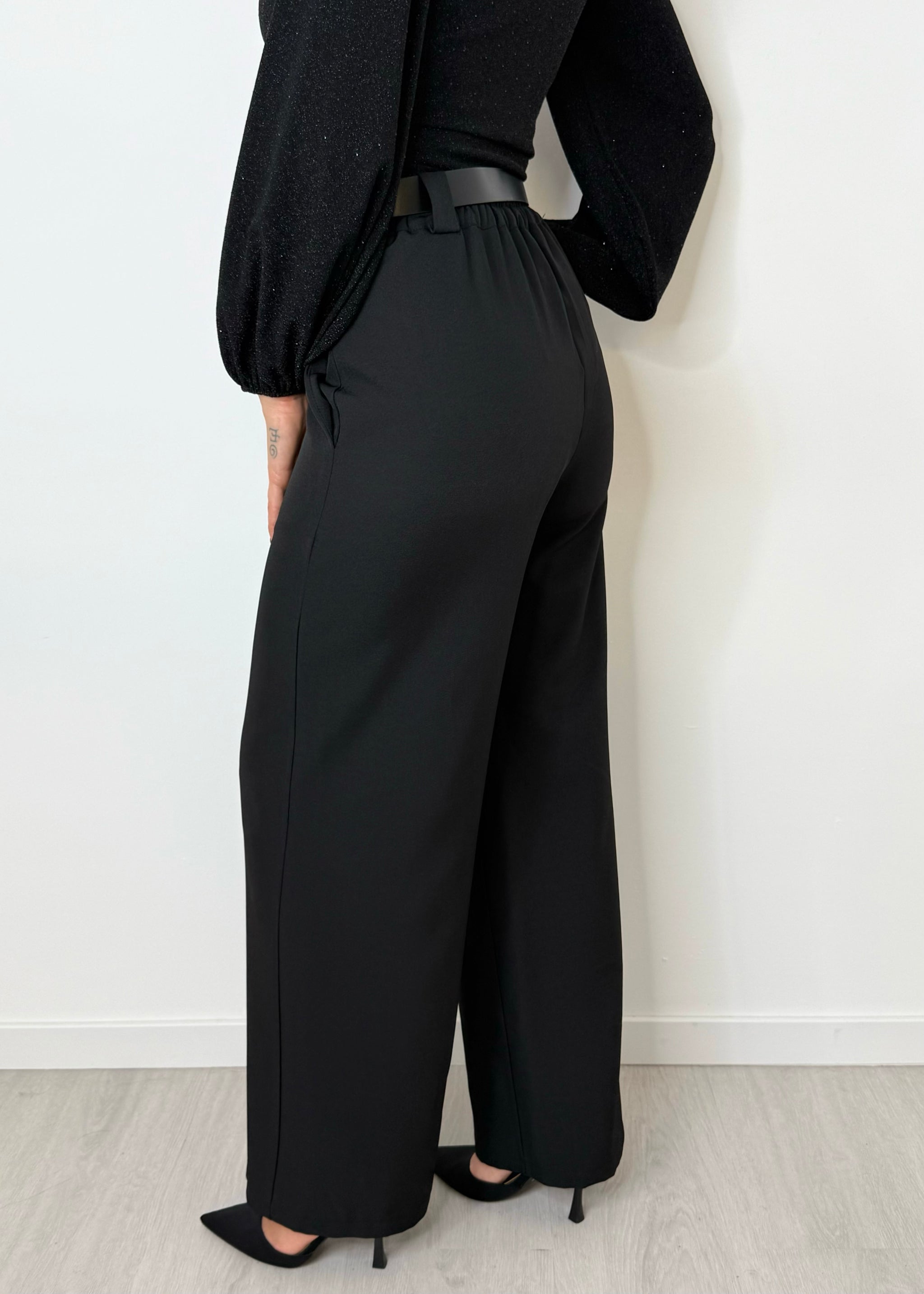 Pantalone a palazzo con cintura, elegante e super comodo, perfetto per ogni occasione. La linea ampia valorizza la figura e garantisce libertà di movimento, mentre la cintura in vita definisce delicatamente il punto vita per un effetto femminile e armonioso. Veste comodamente dalla S/M/L, adattandosi perfettamente a diverse silhouette. Ideale da abbinare a top aderenti o bluse morbide per un look sofisticato ma rilassato.