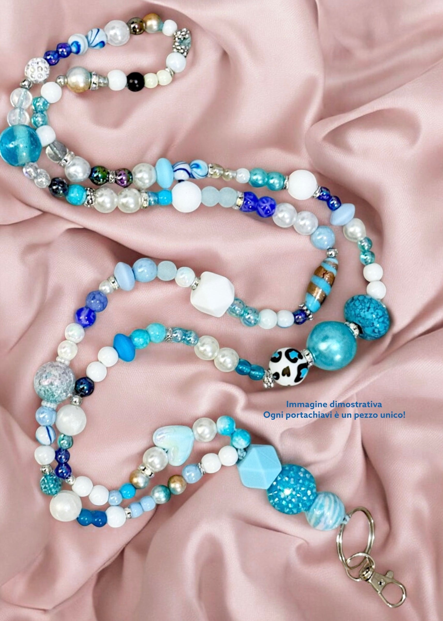 Portachiavi Lungo da collo di perle fatto a mano 🩵 Azzurro