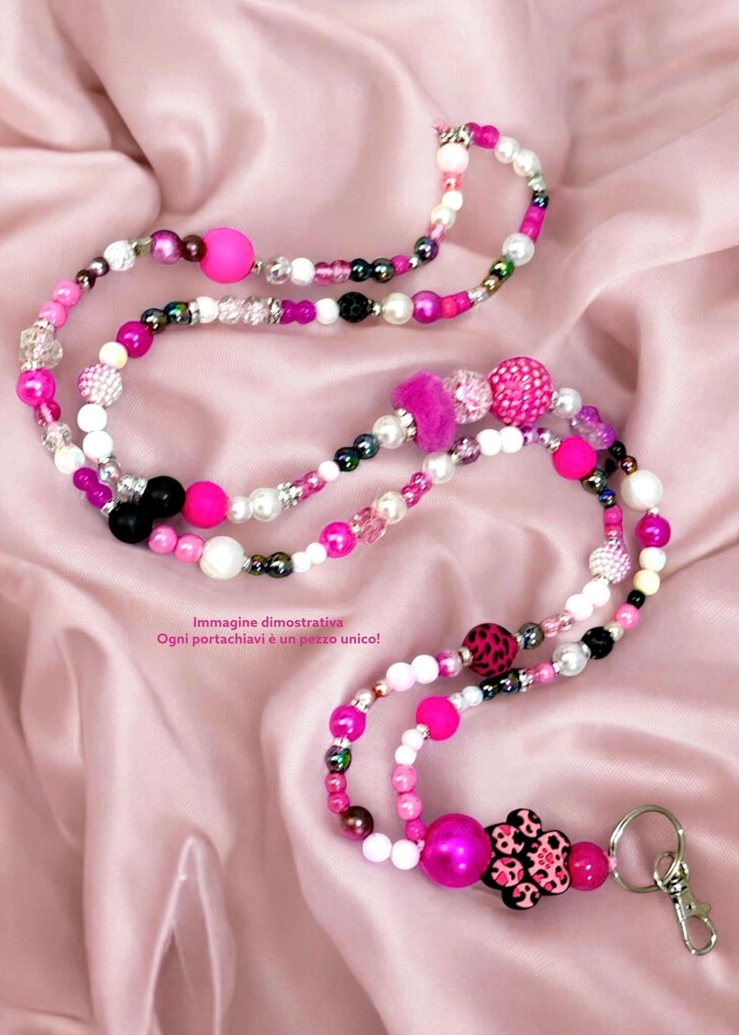 Portachiavi Lungo da collo di perle fatto a mano 🩷 Fucsia