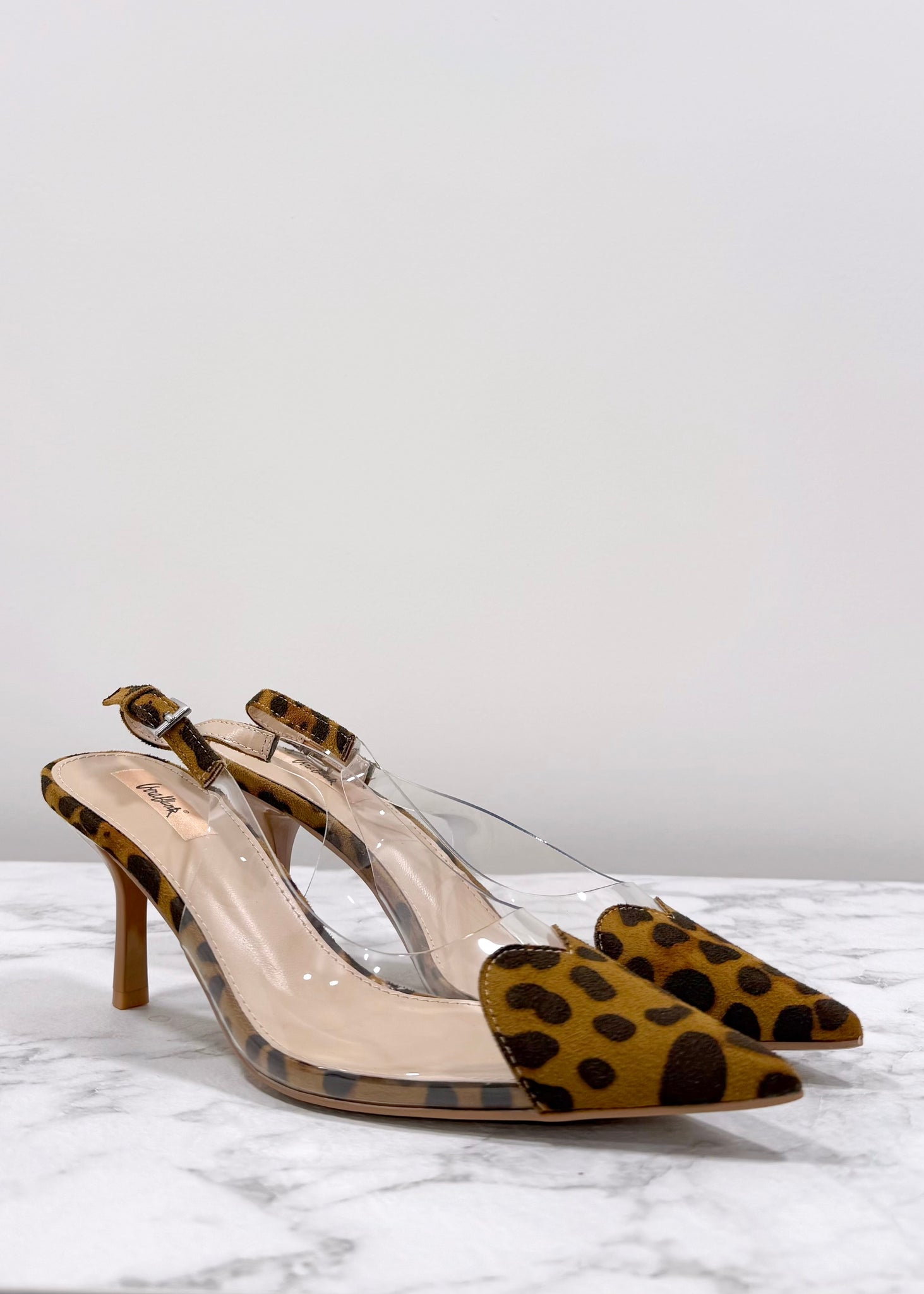 Tacco basso trasparente dal design sensuale e raffinato. Caratterizzato da una punta a cuore in scamosciato leopardato, unisce eleganza e audacia per un look irresistibile. Perfetto per chi ama distinguersi con stile. ✨ Altezza tacco 5,5cm.